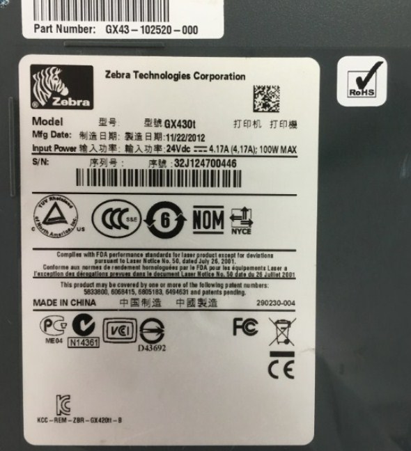 This genuine USA Original AC Adapter for Zebra GX420D GX420T GX430T 808101-001 FSP100RDB 9NA1000100 H00002832 112710 Zebra Technologles Corporation 24V 4.17A