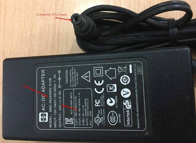 Adapter SMS-00240200-S10B 24V 2.0A Connector Size 5.5mm x 2.1mm