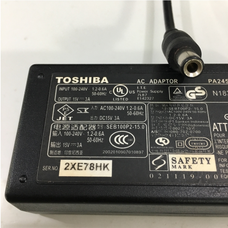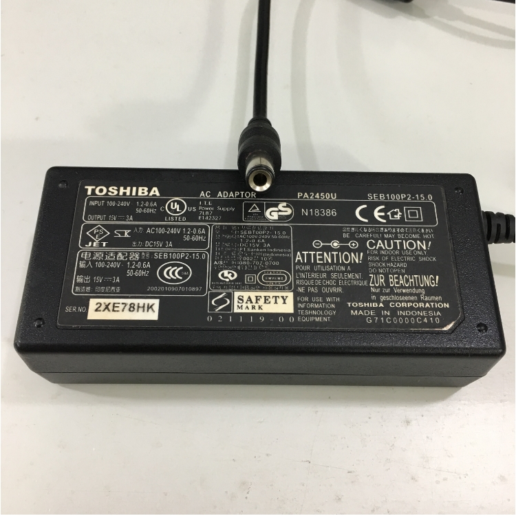 Adapter Toshiba 15V 3A PA2450U Connector Size 6.5mm x 3.0mm