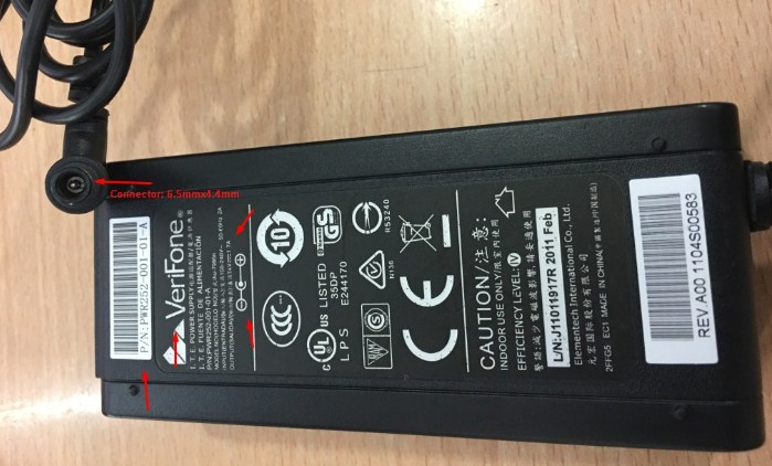 Adapter Verifone PWR252-001-01-A 24V 1.7A Connector Size 6.5mm x 4.4mm