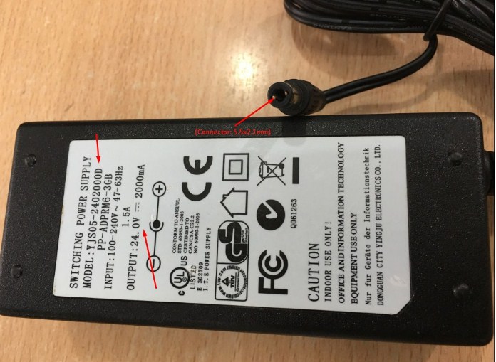 Adapter YJS05-2402000D 24V 2000mA Connector Size 5.5mm x 2.1mm