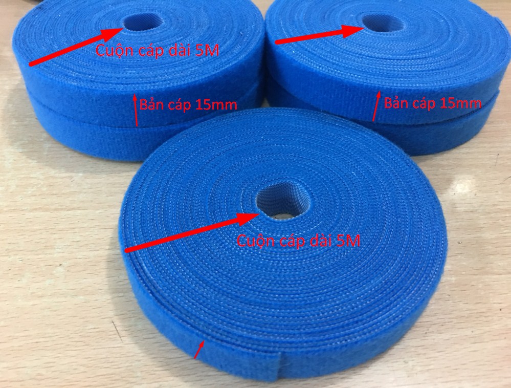 Băng Cuộn Bó Cáp VELCRO BRAND ONE-WRA Roll WRAP TAPE YARD ROLL 15mm x 5m Blue For Fiber Optic Network Ethernet Patch Cord Cable Dài 5M