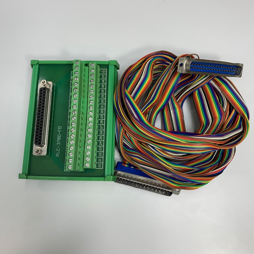Bộ Cáp 2M 6.5ft IDC DB37 Male to Male 37 Pin D- Sub Rainbow Wire Flat Ribbon Cable 2.54mm Pitch + Cầu Đấu DB37 37 Pin D- Sub Female PLC-37DB-FD KMRML Terminal Block
