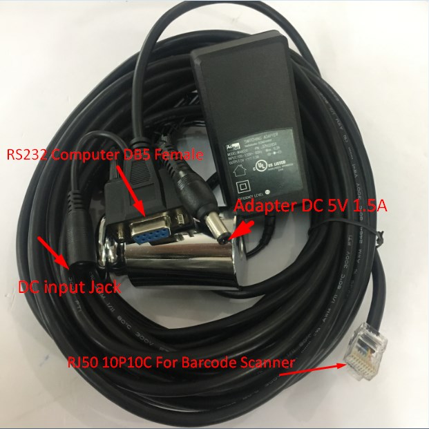 Bộ Cáp Cho Máy Quét Newland CBL037R Cable RS232 to RJ50 10Pin Cable with DC Power và Adapter 5V 1.5A DC Power Supply For Newland Barcode Scanner Length 3M