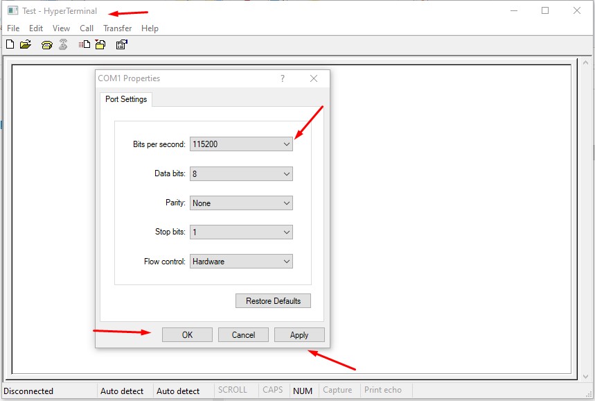 - Test Kết Nối RS232 Trong Hyperterminal