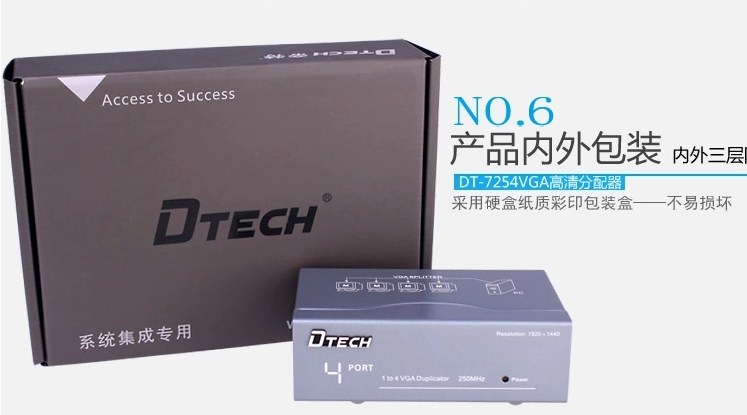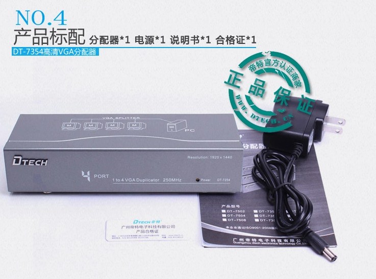 Bộ Chia VGA Video Splitter 1 to 4 DTECH 250MHZ Model DT-7254