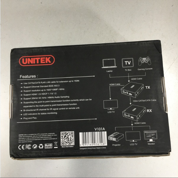 Bộ Chuyển Đổi Tín Hiệu HDMI to LAN Unitek V101A HDMI Network Ip Extender 150 Meters Sender and Receiver Adapter