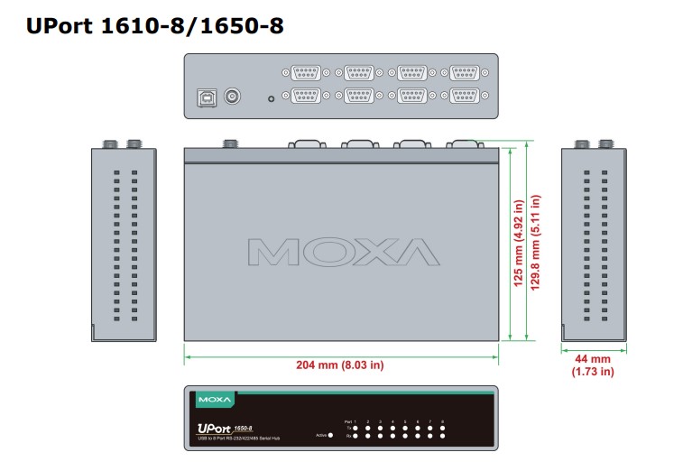 Bộ Chuyển Đổi MOXA UPort 1610-8 USB to 8 Port RS-232 Serial Hub For Điều Khiển Công Nghiệp, Thiết Bị Y Tế, Hệ Thống Giám Sát