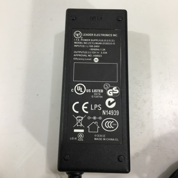 Bộ Chuyển Đổi Nguồn Adapter 12V 3.33A 40W Original LEI Leader NU40-2120333-I3 Connect Size 5.5mm x 2.5mm 90 Degree