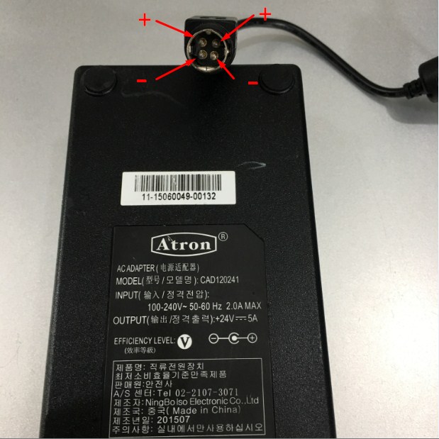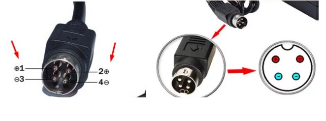 Điện áp đầu ra: 24V 5A 4 Pin Mini Din 10mm DC 4 chân có đầu tròn (Mũi tên hướng lên, hai chân bên dưới V- , hai chân trên cùng V +)