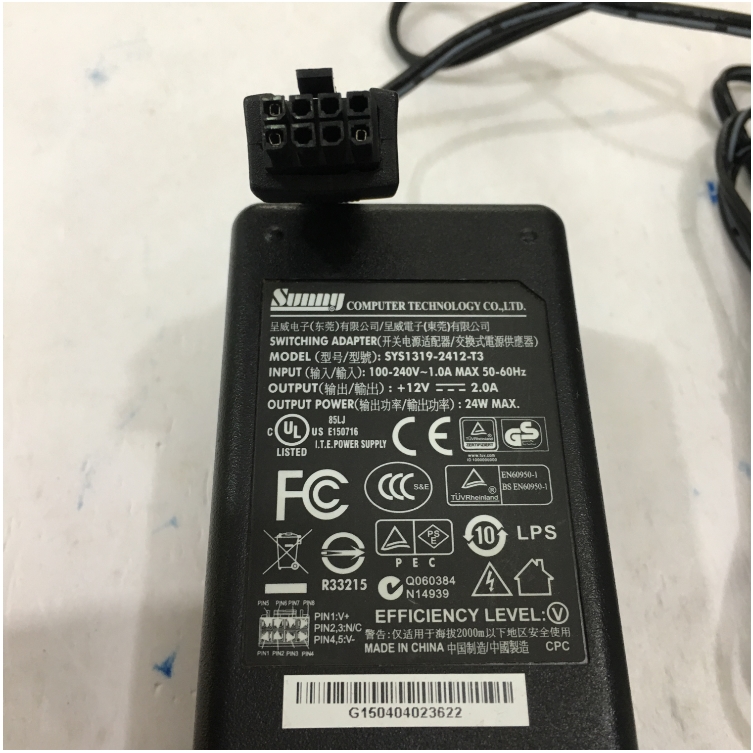 Bộ Chuyển Đổi Nguồn Adapter Original 12V 2A 24W SUNNY SYS1319-2412-T3 For Alcatel-Lucent I-240G-U FIBER OPTIC MODEM GATEWAY Connector Size Molex Micro-Fit 3.0 Dual Row 8 Circuits