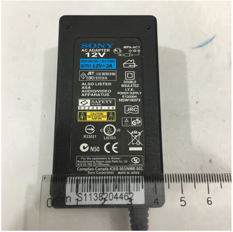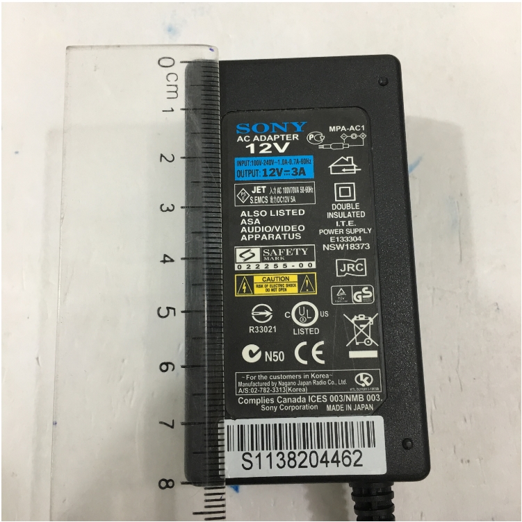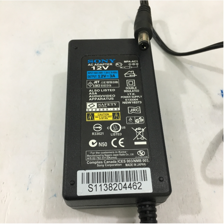 Bộ Chuyển Đổi Nguồn Adapter Original 12V 3A 36W SONY MPA-AC1 Connector Size 5.5mm x 2.1mm