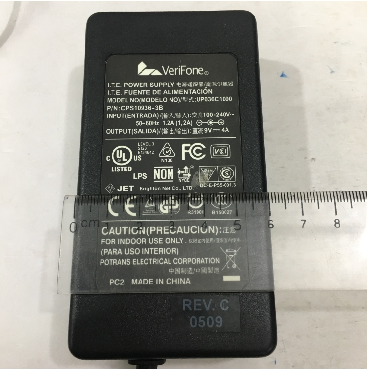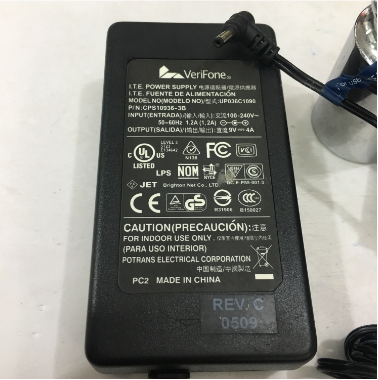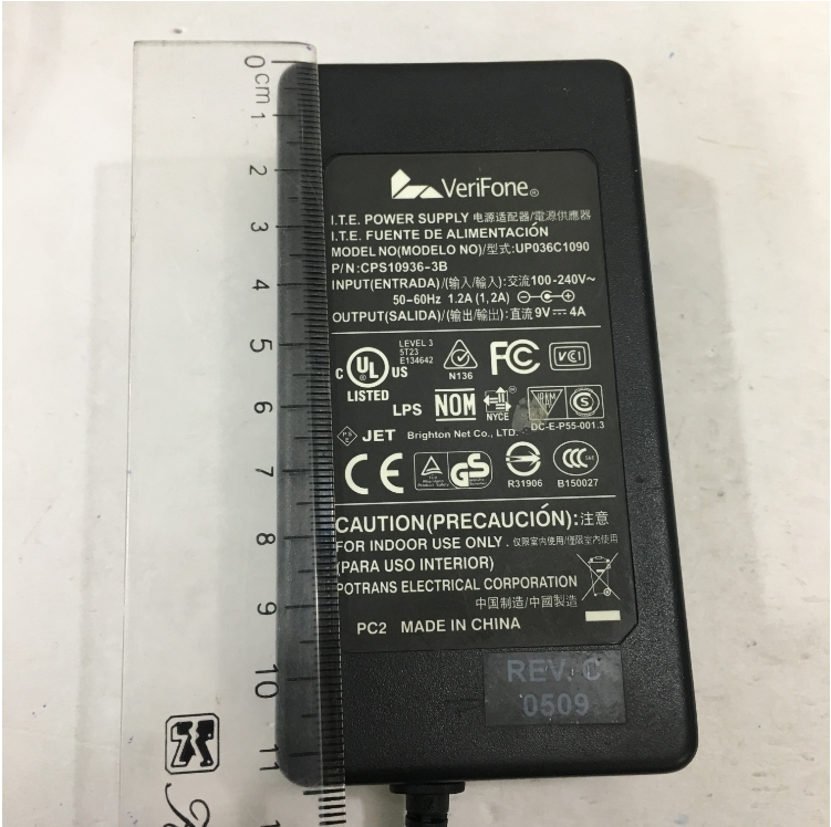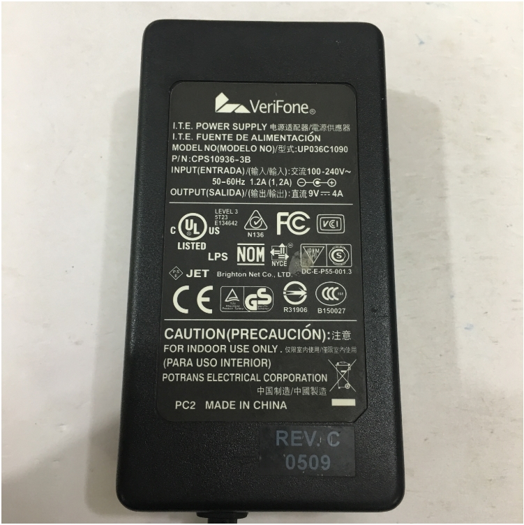 Bộ Chuyển Đổi Nguồn Adapter Original 9V 4A 36W VeriFone UP036C1090 Connector Size 3.5mm x 1.35mm 90 Degree