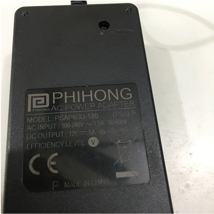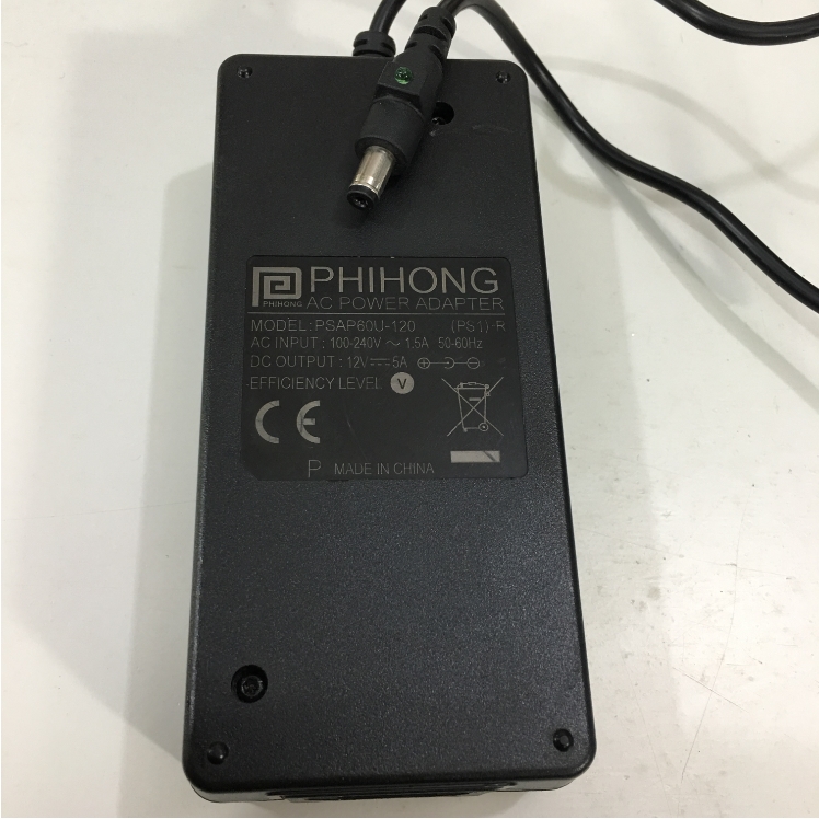 Bộ Chuyển Đổi Nguồn Adapter PHIHONG 12V 5A 60W PSAP60U-120 Connector Size 5.5mm x 2.1mm