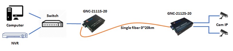 Bộ Chuyển Đổi Quang Điện GNETCOM Media Converter 10/100/1000M Quang Một Sơi GNC-2111S-20/GNC-2112S-20 2 Port LAN 10/100/1000Mbps