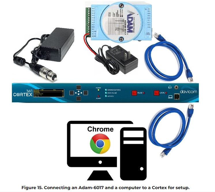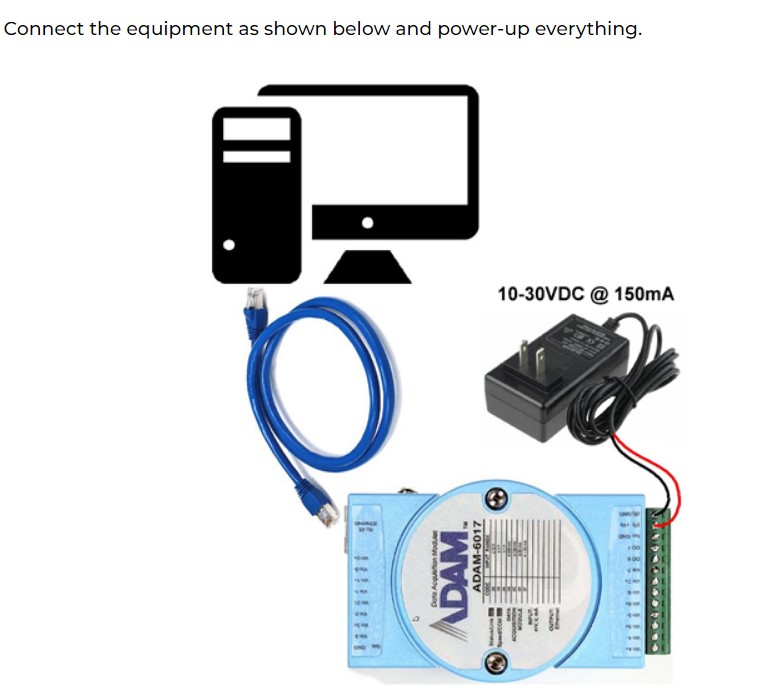 Connecting an Adam-6017 and a computer to a Cortex for setup