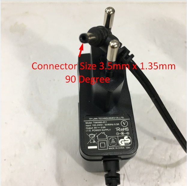 Bộ Chuyển Nguồn Chĩnh Hãng Adapter Original TP-LINK 9V 0.6A Connector Size 3.5mm x 1.35mm 90 Degree