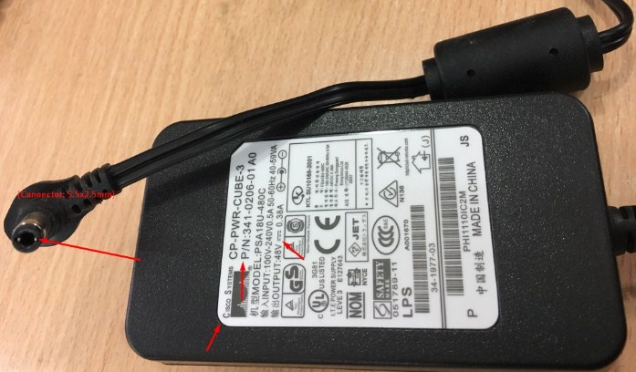 Bộ chuyển nguồn Cisco Aironet 1830 AIR-AP1832I-S-K9 48V 0.38A 40W Connector Size 5.5mm x 2.5mm