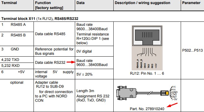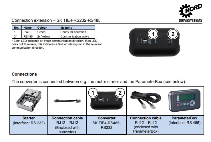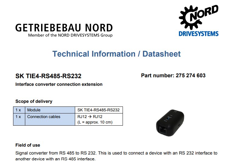 Chức năng: Điều khiển và truyền số liệu Upload/ Download cho các dòng biến tần của NORD CON