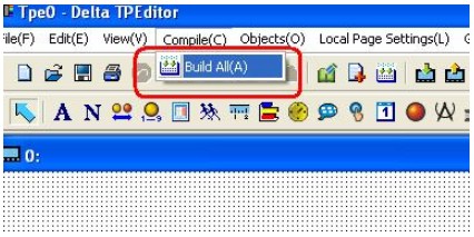 Step 1. After finishing the program editing in TPEditor, the program should be compiled first before downloading to TP series. Click or choose Compile(C) > Build All(A) to compile the editing program