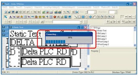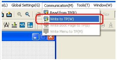 Step 3. Then, activate TPEditor software program, click Communication(M) > Write to TP(W) The Confirm dialog box will display , and then press Yes button for confirmation. The system will start to download the program to TP series. At the same time, the downloading status (percentage of downloading) will also show during download process . After the download succeeded, press OK button to complete transmission .