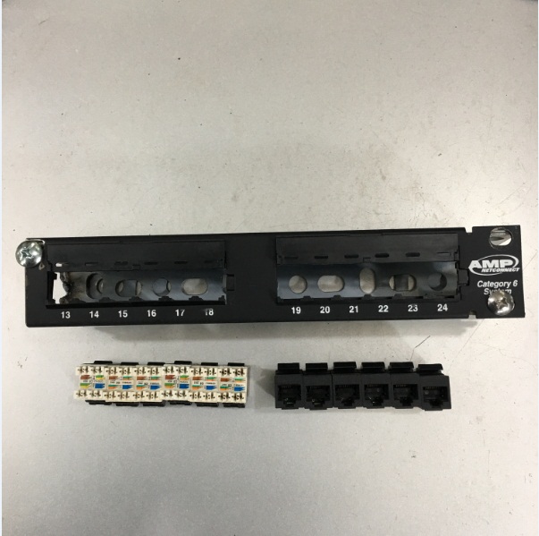 Bộ Combo WallPlate Chữ Nhật 12 Port AMP CAT6 Ethernet RJ45 Network LAN Lắp Âm Sàn Và Âm Tường 245 x 45 x 50mm Black