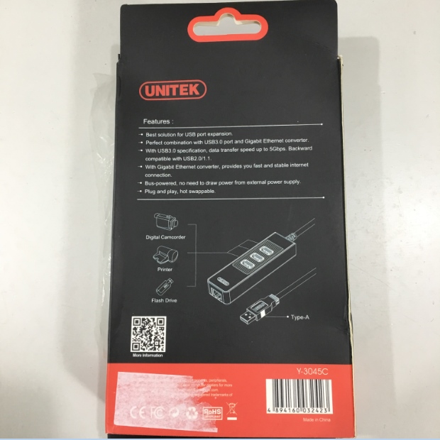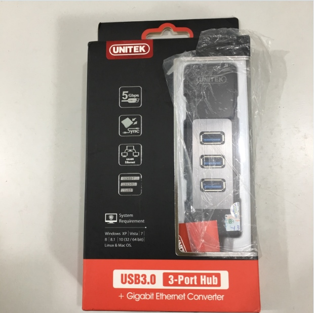 Bộ Converter USB3.0 to 3 Port USB 3.0 + Lan Gigabit Ethernet 10/100/1000 Unitek Y-3045C