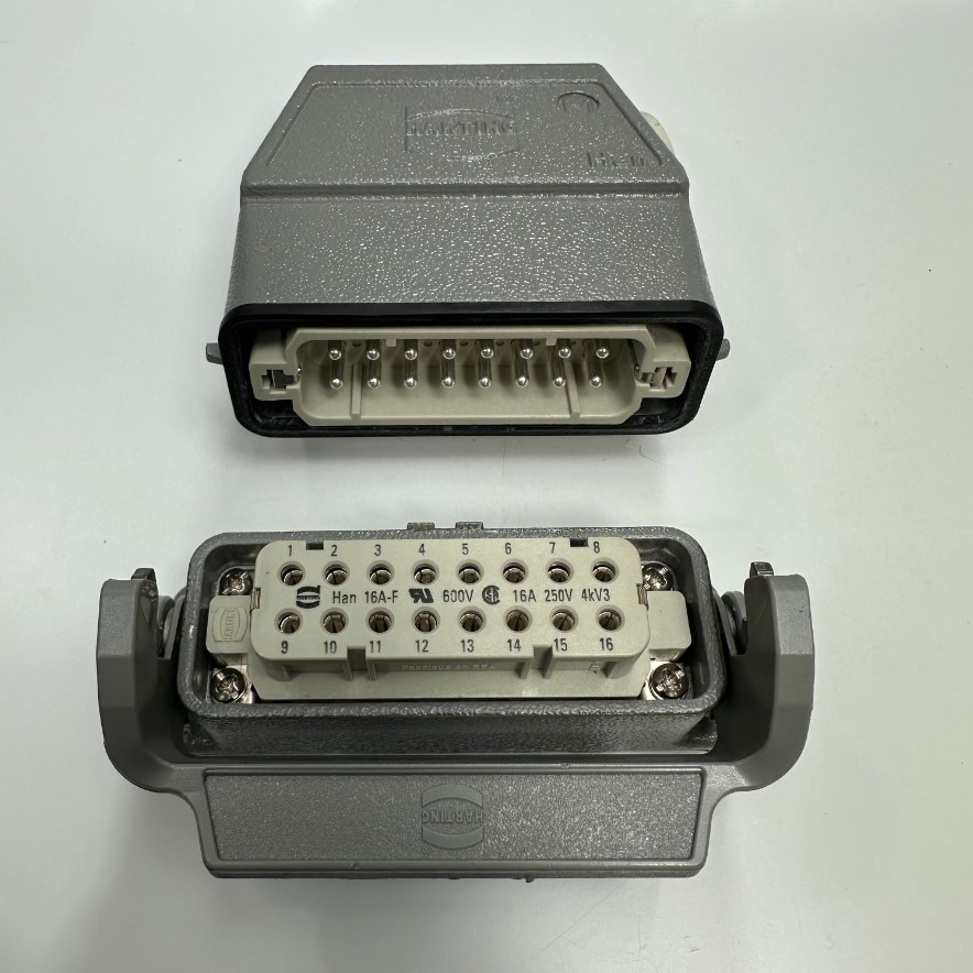 Bộ Đầu Nối Điện Công Nghiệp HARTING HDC 16 Pin Male to Female Jack Han 16A-M + Han 16A-F 16A 250V 4KV3 Panel 09200160541 & Panel 09200160301 HARTING