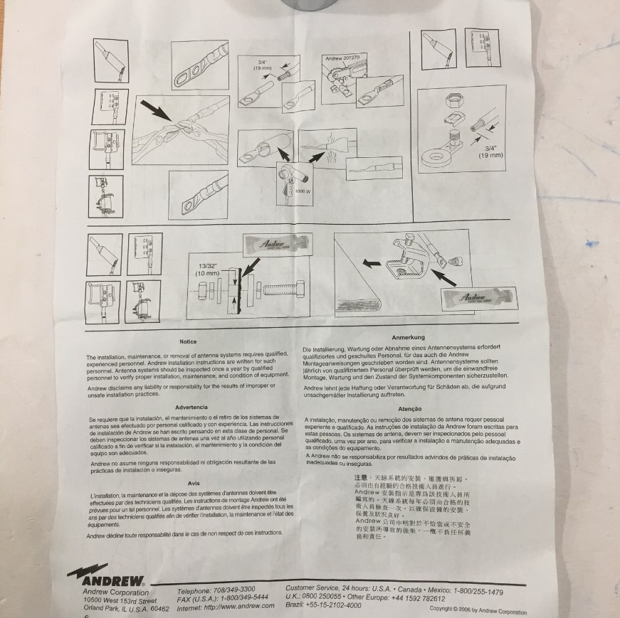 Bộ Dụng Cụ Nối Đất Chống Sét Andrew 241088-3 Standard Grounding Kit for 1-1/4 in Corrugated Coaxial Cable And Elliptical Waveguide 64 And 77