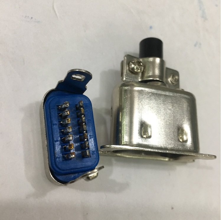 Đầu nối A: Ốp đầu và rắc hàn D-SUB 14 Chân Hai Hàng Dương DB14 Male 2 Row 14Pin và hai đai vít rắc