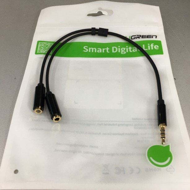 Cáp Audio Cable 4 Pole 3.5mm Male to 2 Female Microphone Extension Cable Headphone Splitter UGREEN 30620 Length 25Cm