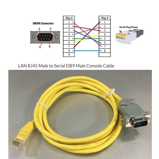 Cáp Điều Khiển LAN RJ45 Male to Serial DB9 Male Console Cable Yellow Length 2M