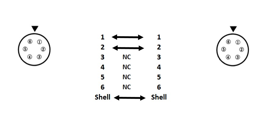 Pin-Out: Hirose HR10-7P-6P(73) Connection: 1-1, 2-2.