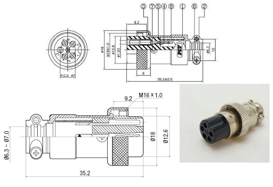 Connector Type 2: Apex PLT-165-P-R 5 Pin Female Circular