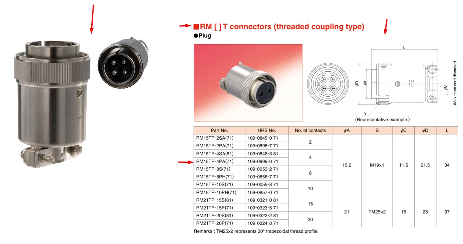 Connector Type 1: Hirose RM15TP-4PA(71) 4 Pin Male Circular