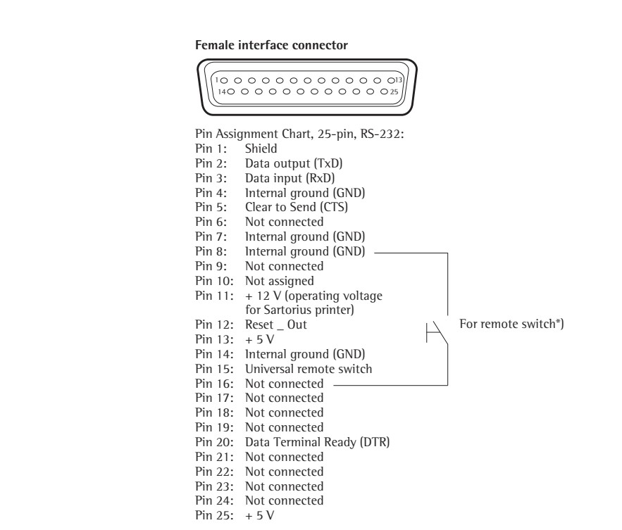 Port RS232 DB25 Female interface connector Sartorius Balance