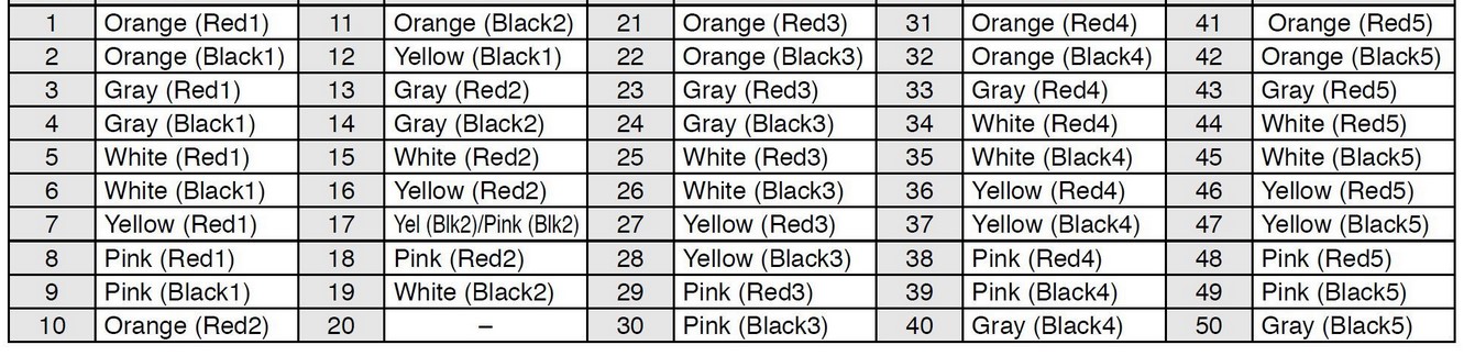 Cable pin No. 50 is not connected to the connector shell (housing) or shielded wire (net wire). Pin No. 50 of the Driver is connected to the shell (housing)