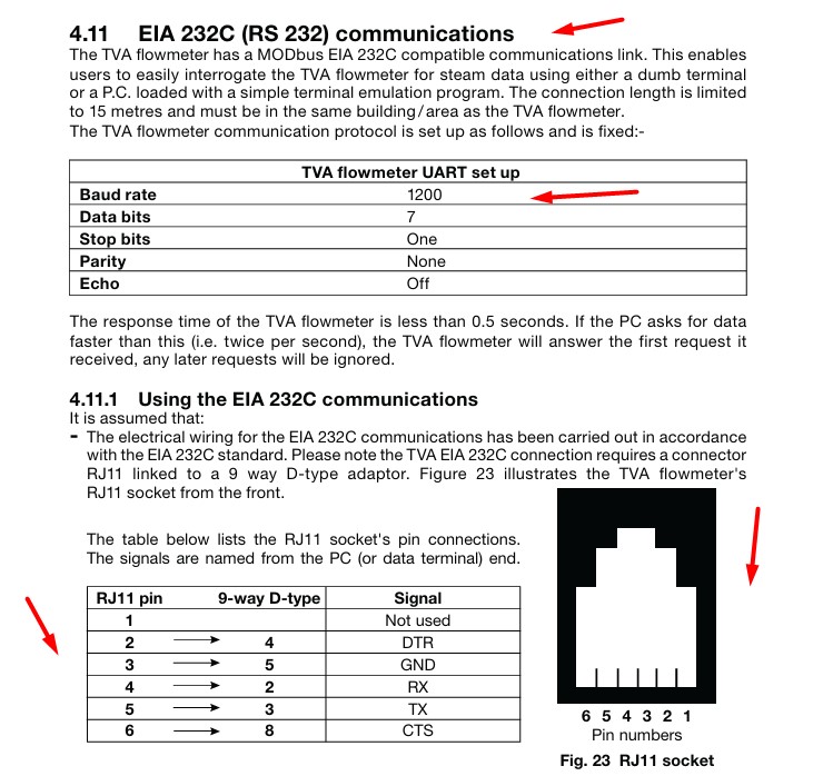 RJ11 socket's 6 Pin RS232C Communications Spirax Sarco/Computer/PLC
