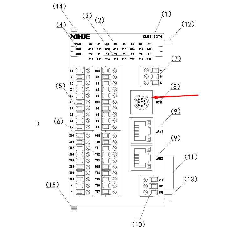 Connector 1: Mini Din 8 Pin Male Connector (PLC XINJE XDH-60T4-E)