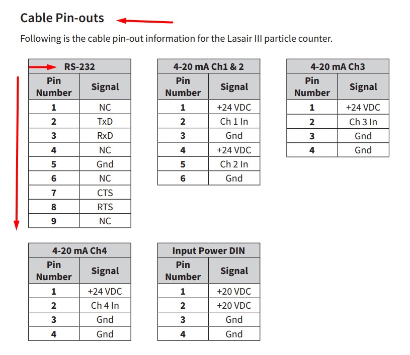 Cable Pin-outs Serial Communications