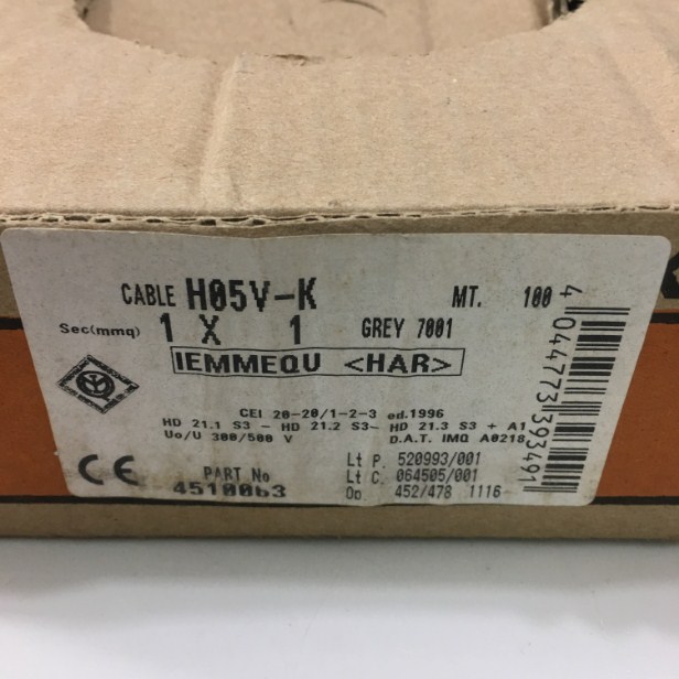 Cáp 100M Lapp Kabel 4510063 Single 1 Core x 1.0mm² H05V-K 1X Cable Grey U₀/U 300/500V PVC For Servo Motor Cables