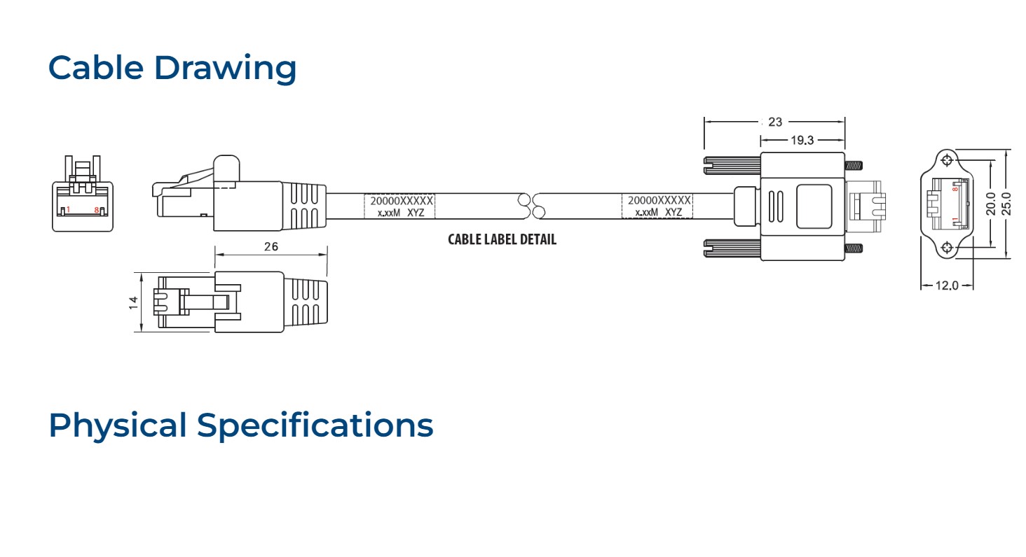 Ethernet cable for GigE vision cameras