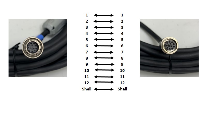 Pin-Out: Straight Through Connection: 1-1 / 2-2 / 3-3 / 4-4 / 5-5 / 6-6 / 7-7 / 8-8 / 9-9 / 10-10 / 11-11 / 12-12/ Shield-Shield