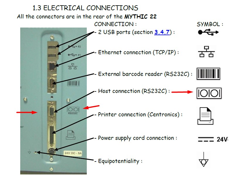 PartNumbe: Cable RS232C MYTHIC 22 Analyzers witch Computer Communication Data Transfer
