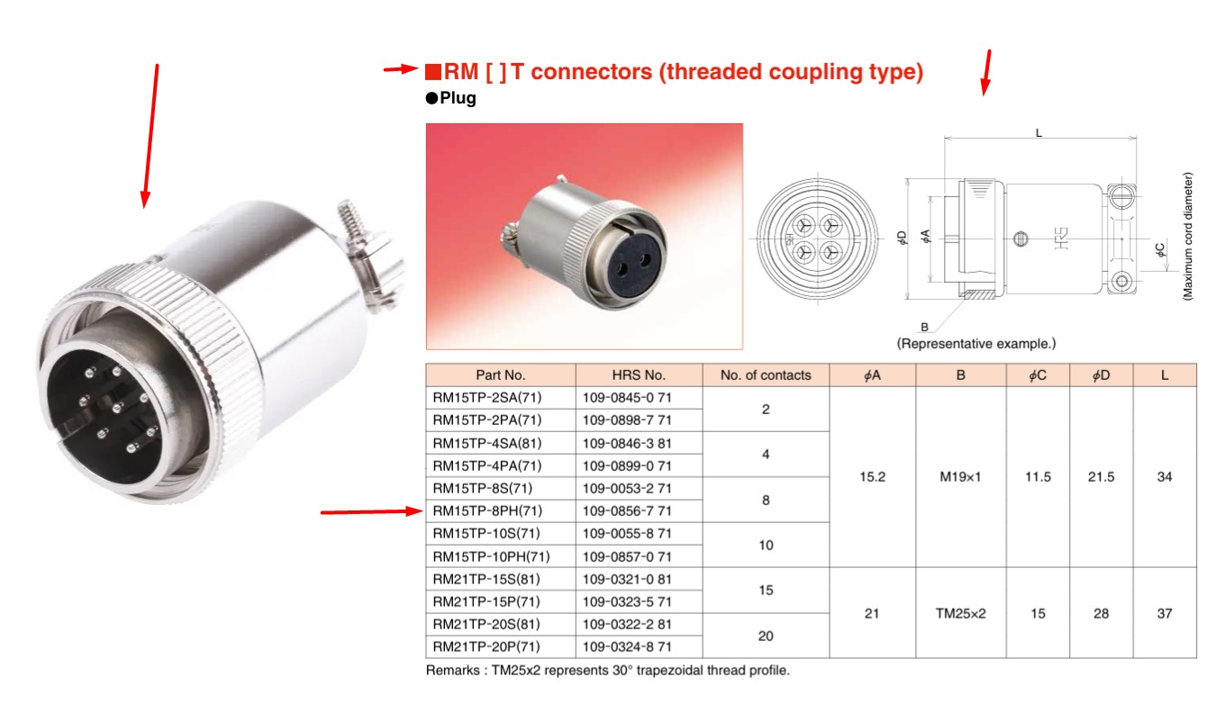 Connector Type 1: Hirose RM15TP-8PH(71) 8 Pin Male Circular