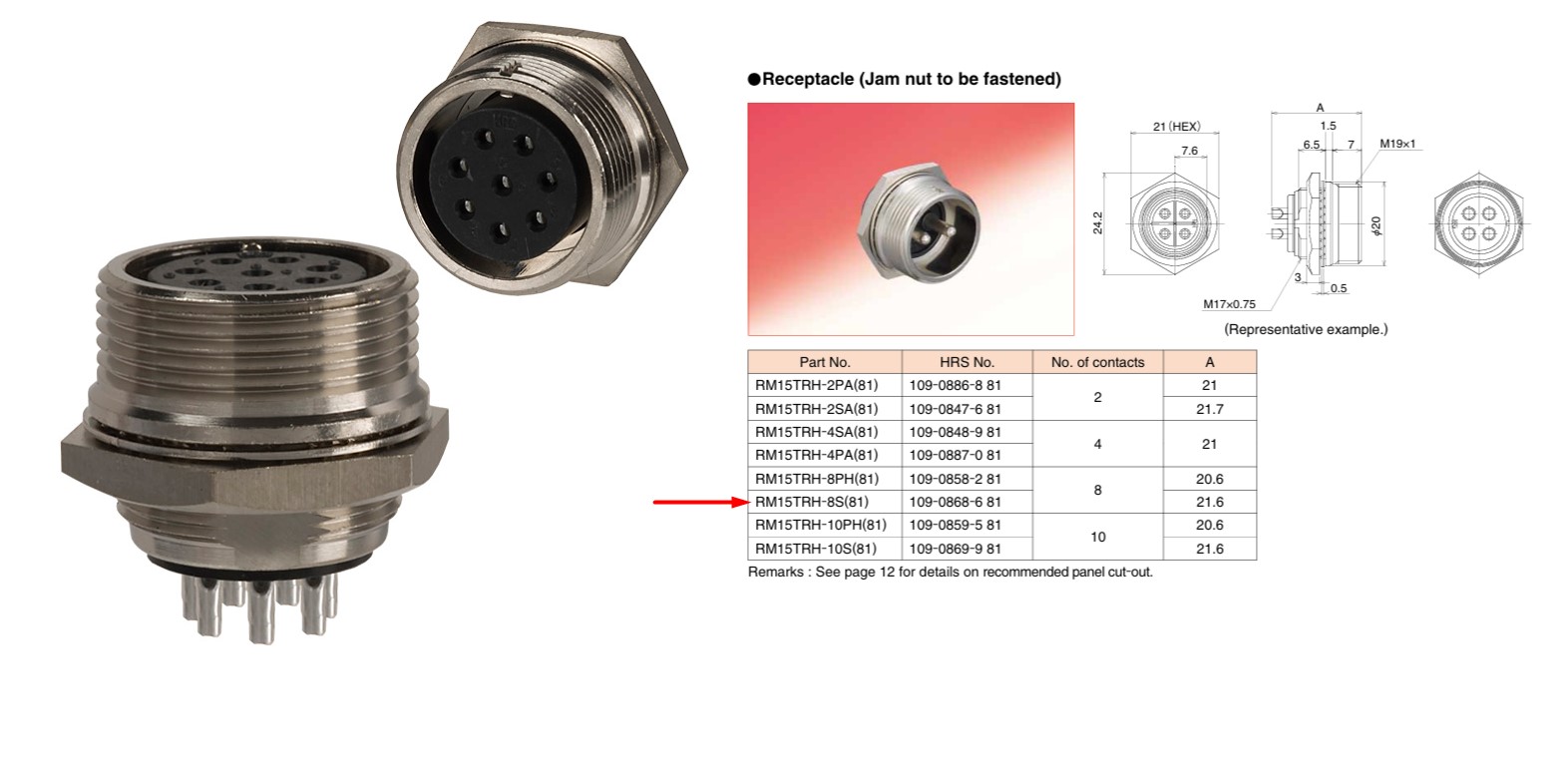 Connector Type 2: Hirose RM15TRH-8S(71) 8 Pin Female Circular
