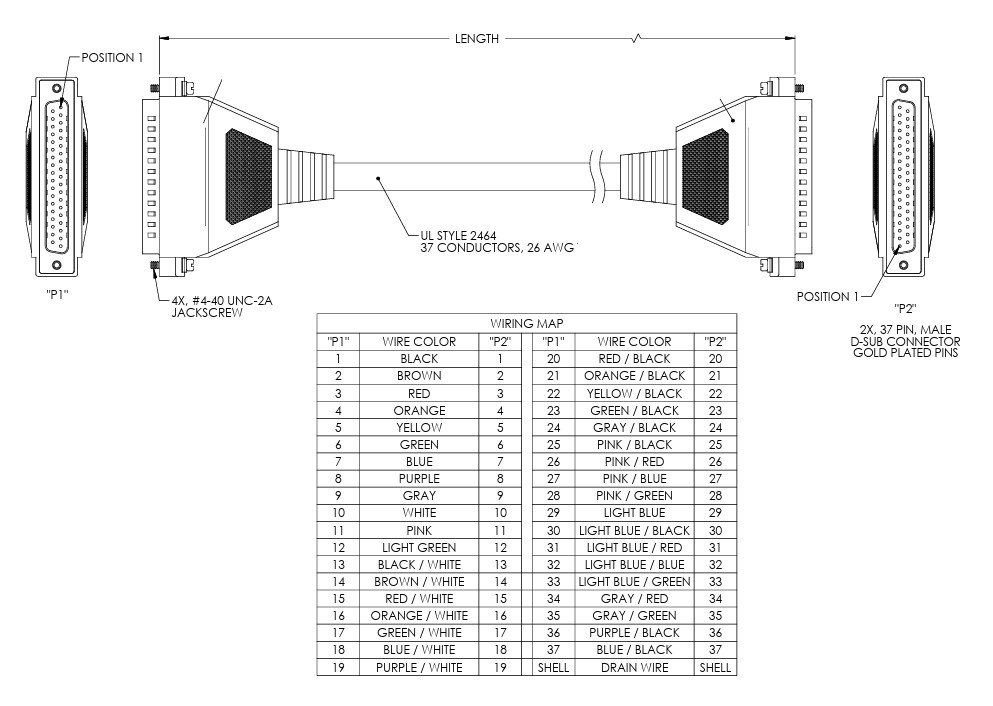 Pin-Out: Straight Through Connection: 1 - 1; 2 - 2;--------; 37 - 37; Shell - Shell