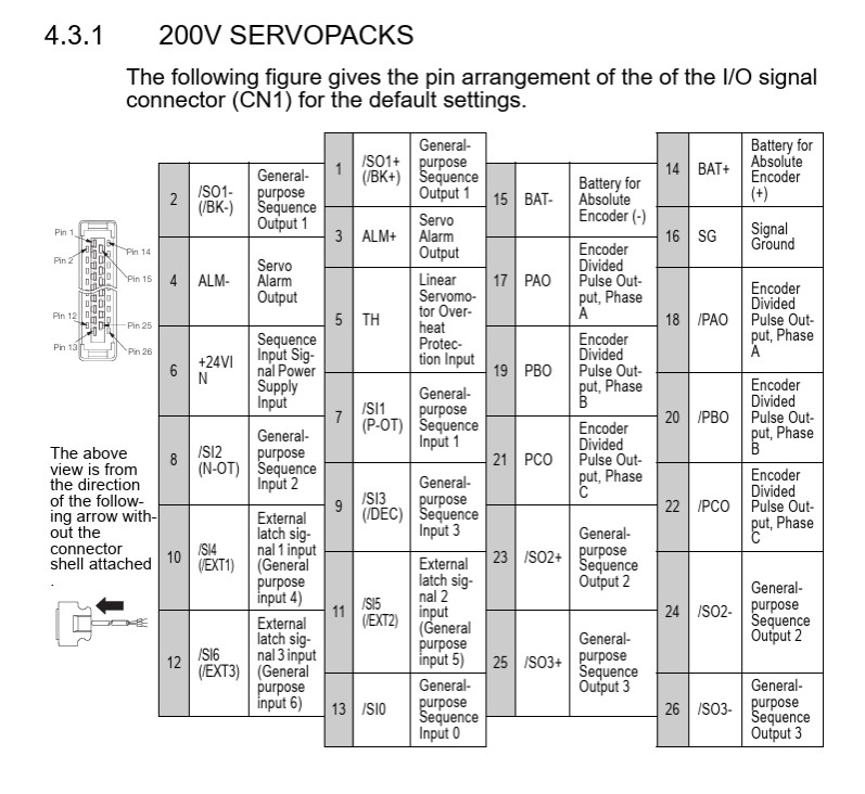 Yaskawa Servo Drive Sigma 7 Series I/O Signal Connector (CN1)