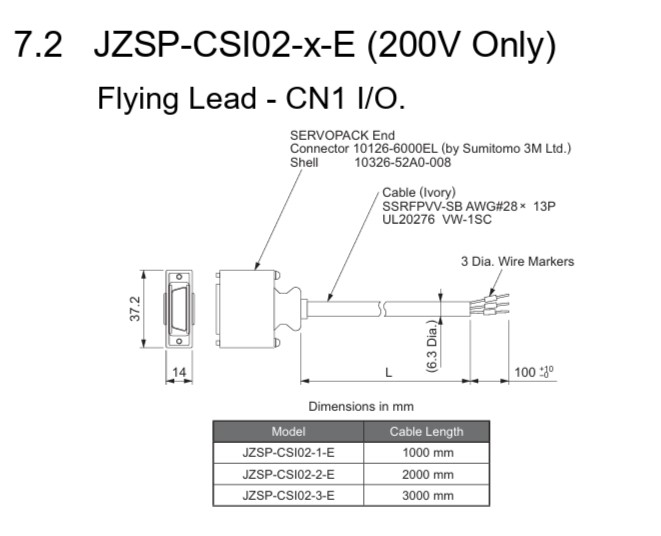Model number: JZSP-CSI02-1-E I/O Cable Servo Drive Motor