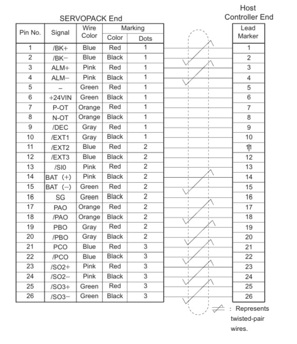 JZSP-CSI02-1-E Cable Servo Connector CN1 26 Core Signal Cable For Yaskawa Servo Drive Sigma 5 Series, Sigma 7 Series I/O Signal